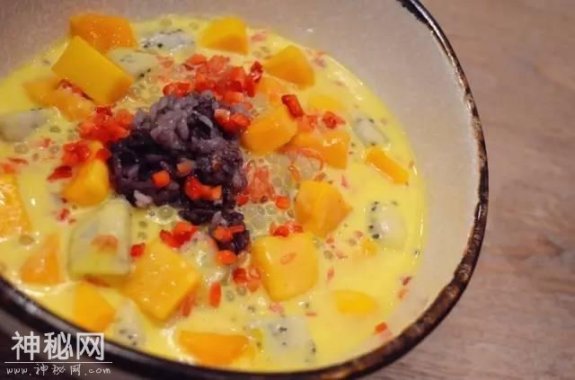 紫米和珍珠米按一定比例混合在一起,头一次吃到杨枝甘露里加米饭的。芒果、火龙果、草莓各种水果让口感更加丰富。冷藏之后吃简直不摆了。