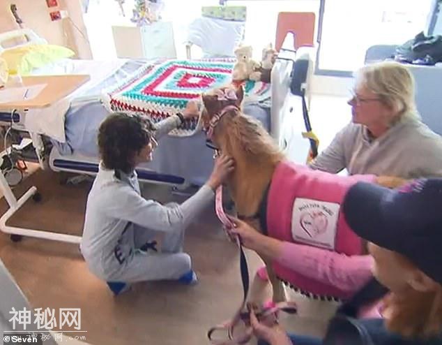 这只70厘米高、65公斤重的粉红色宠物狗是有史以来第一个到医院探望病人的马,它也因此创造了南澳大利亚的历史。